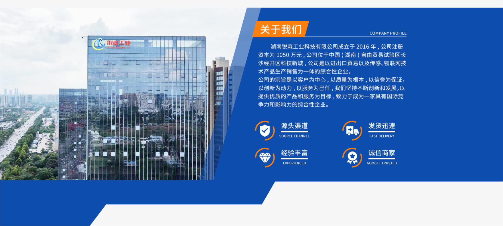 湖南銳森工業(yè)科技有限公司成立于2016年,公司位于中國(guó)(湖南)自由貿(mào)易試驗(yàn)區(qū)長(zhǎng)沙經(jīng)開(kāi)區(qū)科技新城。公司是以進(jìn)出口貿(mào)易以及傳感、物聯(lián)網(wǎng)技術(shù)開(kāi)發(fā)為一體的綜合性企業(yè),目前為多個(gè)國(guó)際和國(guó)內(nèi)一流品牌在中國(guó)區(qū)域的銷(xiāo)售戰(zhàn)略合作伙伴。